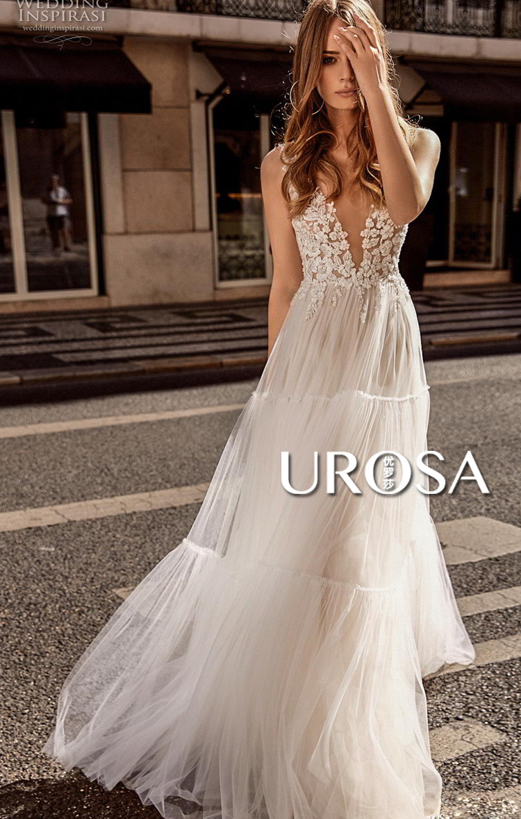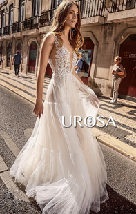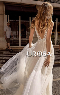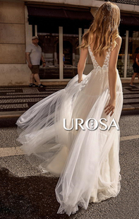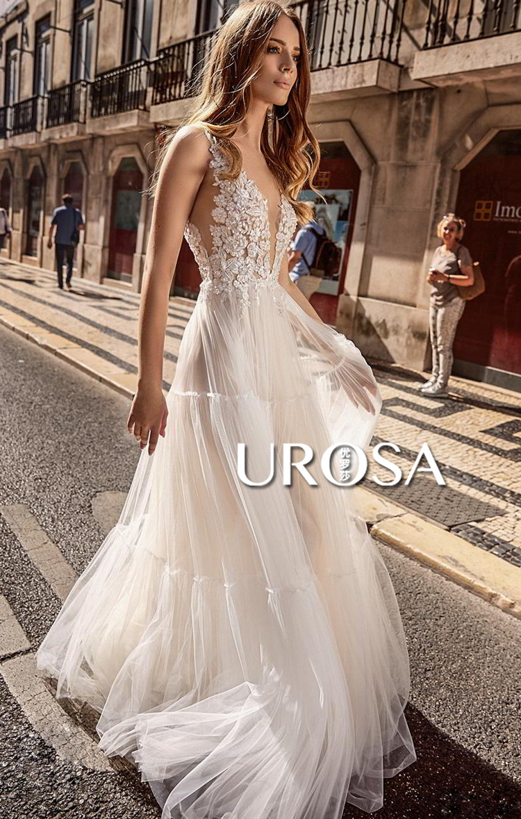 新款 新娘婚纱户外草坪婚礼旅拍飘逸森系轻婚纱 双肩V领欧美气质款
