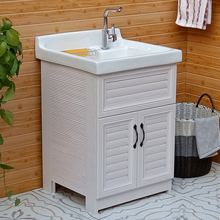 洗衣池洗手盆可定制太空铝洗衣柜不锈钢浴室柜阳台一体陶瓷搓衣板