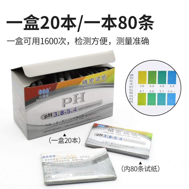 5.4 一盒 5.0 三爱思试纸20本 7.0 6.4 9.0 PH广泛试纸溶液酸碱测试精密试纸1 8.0 0.5 5.5 3.8