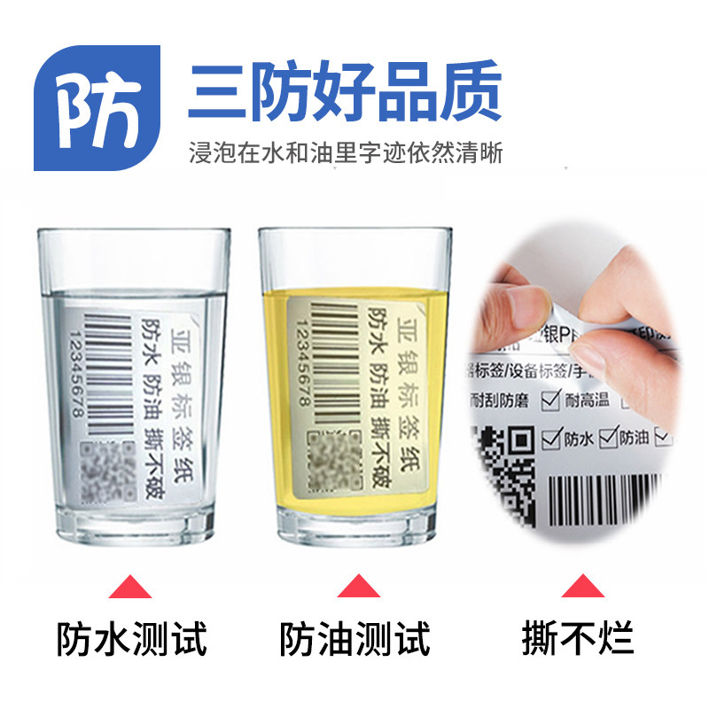 5丝亚银标签纸不干胶60 100mm哑银pet条码 打印纸固定资产设备防水哑银标签纸耐高温可定制