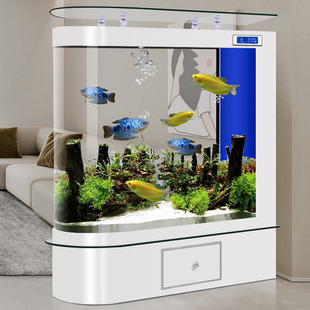 子弹头鱼缸家用客厅中大型鱼缸水族箱玻璃落地屏风隔断生态金鱼缸