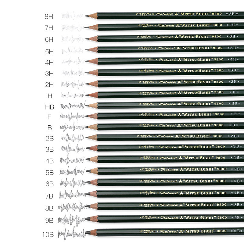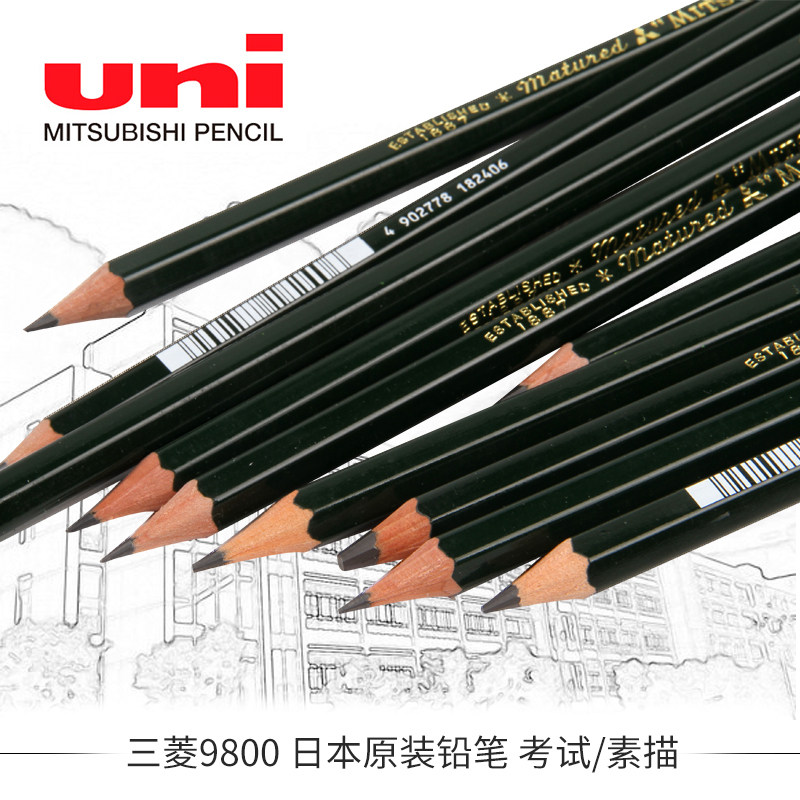 4b全套装 三菱铅笔uni三菱9800铅笔盒装 炭笔木质头学生日本素描 mitsubishi绘画专业美术专用2比书写2B