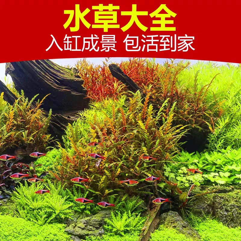 鱼缸懒人水草坨草水榕沉木藻球莫斯真阴性水草水族箱造景前景草