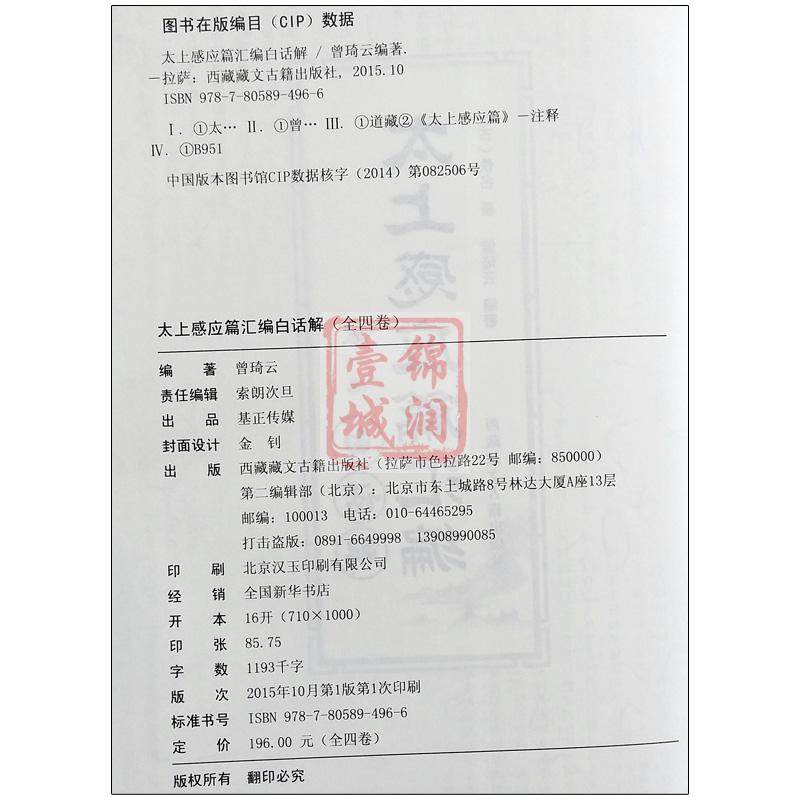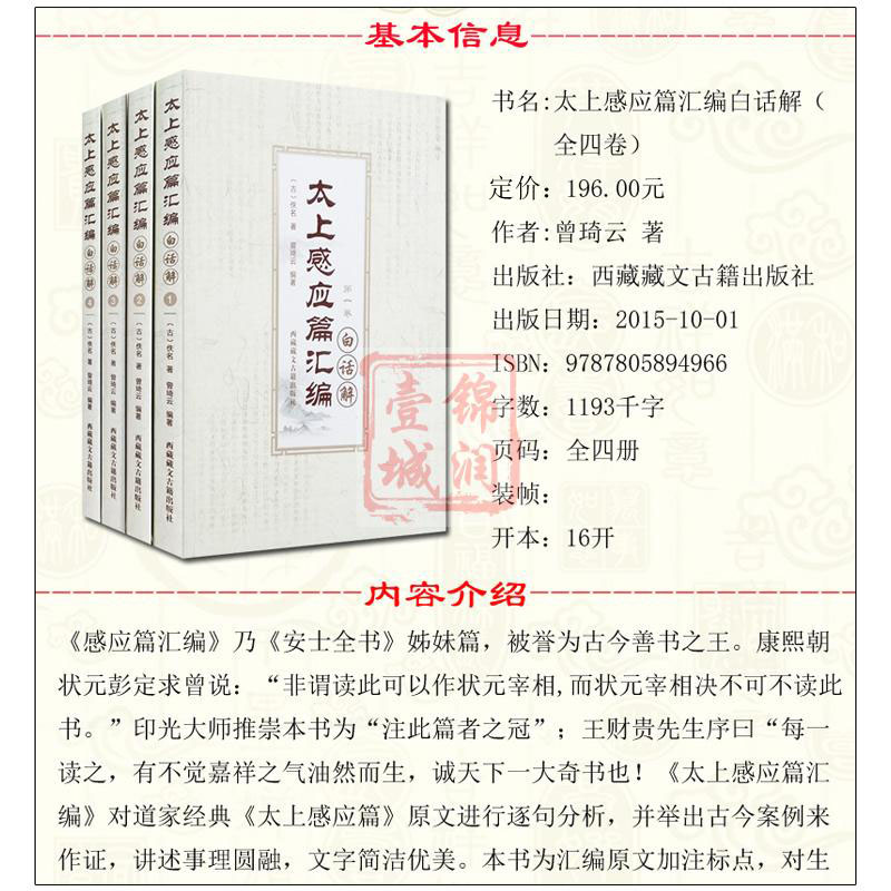 西藏藏文古籍出版 太上感应篇汇编白话解 曾琦云 太上感应篇白话解 社 全四册