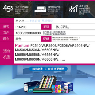 P2506墨盒 p2510w激光打印机碳粉盒易加粉 M6506NW M6606NW 奔图pd206硒鼓 M6556 格之格适用奔图m6506硒鼓