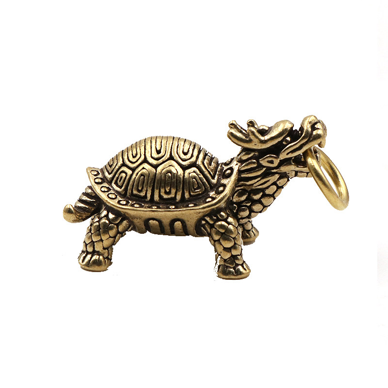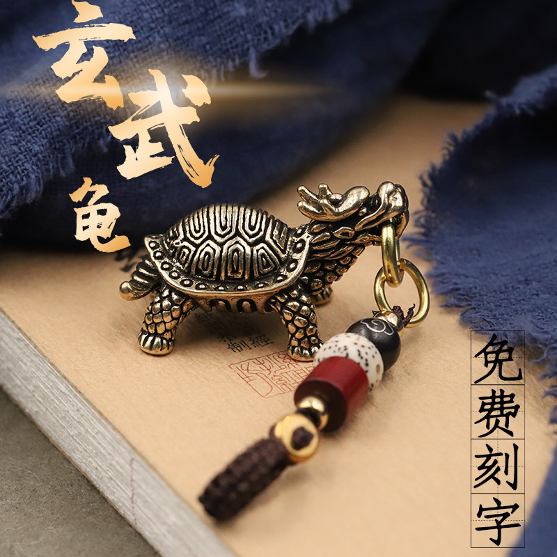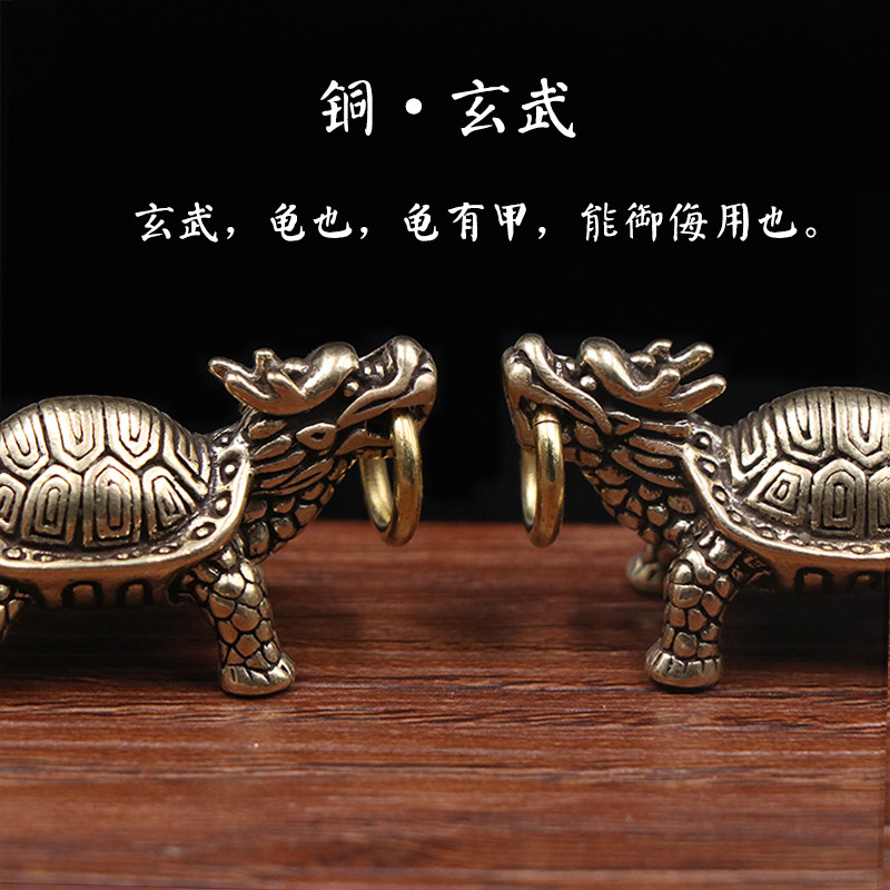 复古纯铜圣兽龙头玄武黄铜实心乌龟挂件镇纸招财汽车钥匙扣挂坠