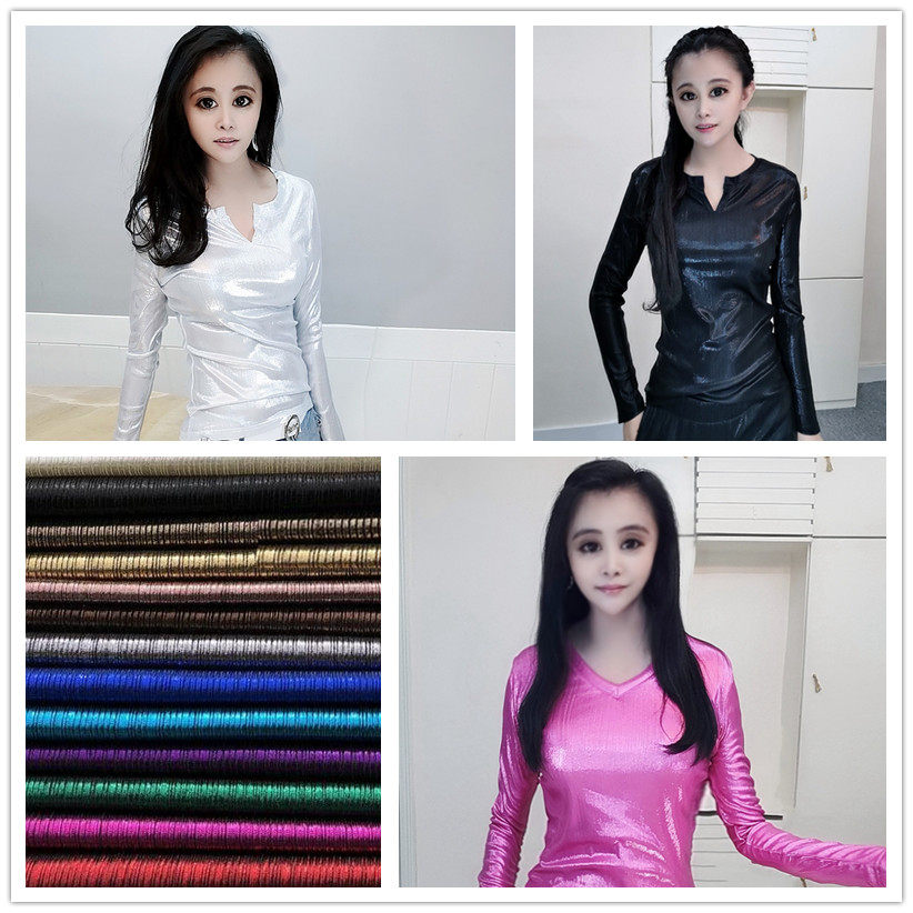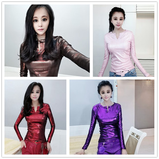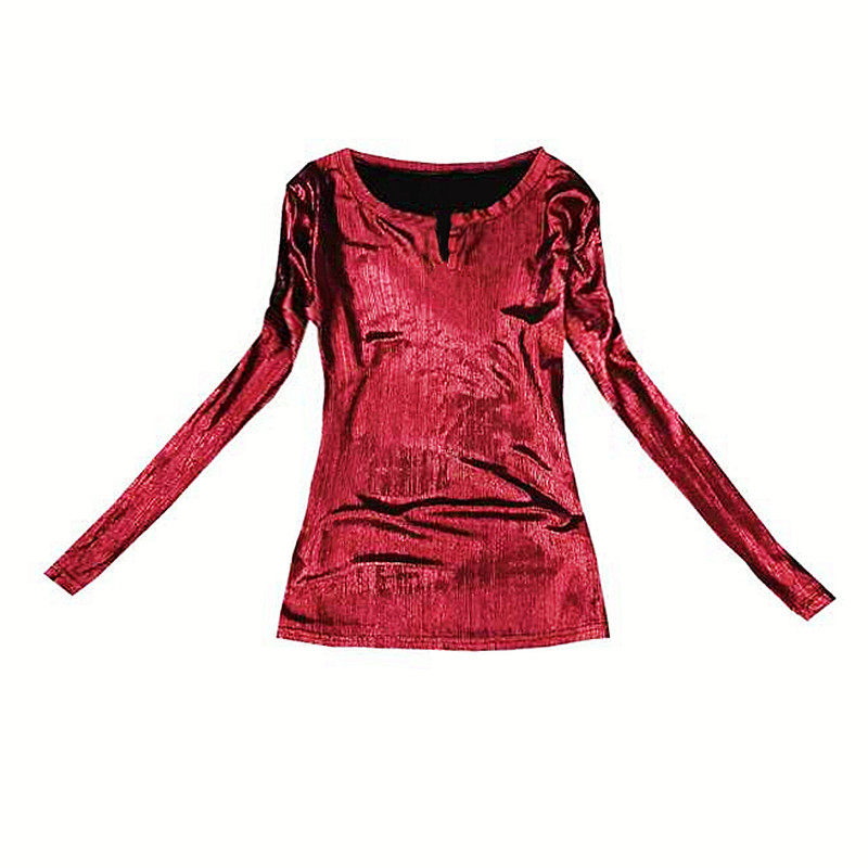亮面金属色烫金打底衫 欧货2023春秋新款 V领长袖 女时尚 潮 洋气小衫