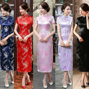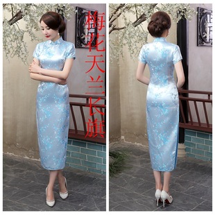 织锦缎礼仪长旗袍剪彩走秀短袖 旗袍裙 旗袍连衣裙演出拍照活动女装