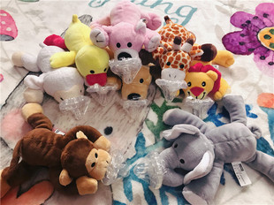 进口婴儿安抚奶嘴毛绒玩具可爱玩偶公仔防掉带链爱得利奶嘴礼盒