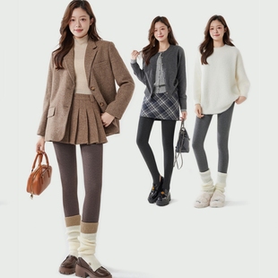加厚麻灰保暖外穿九分 女大码 平纹烟灰色连裤 袜棉秋冬加绒打底袜裤