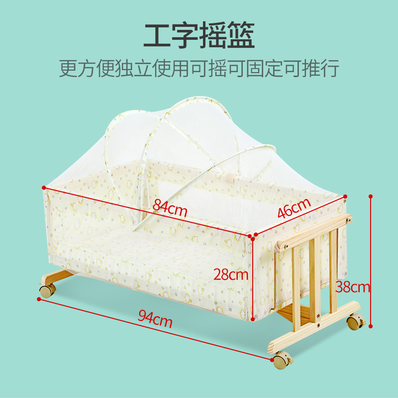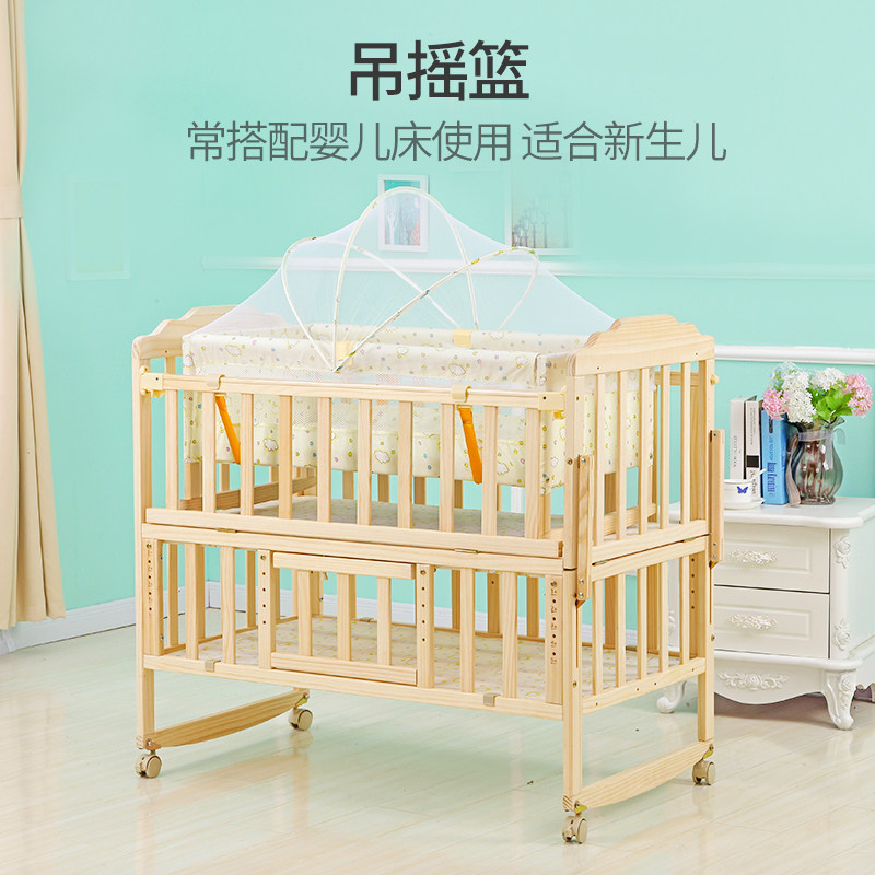 婴儿摇篮床实木无漆环保宝宝摇篮床大床新生儿可悬挂摇篮床带蚊帐