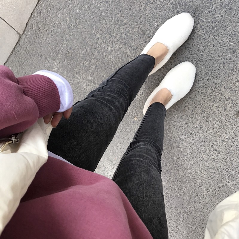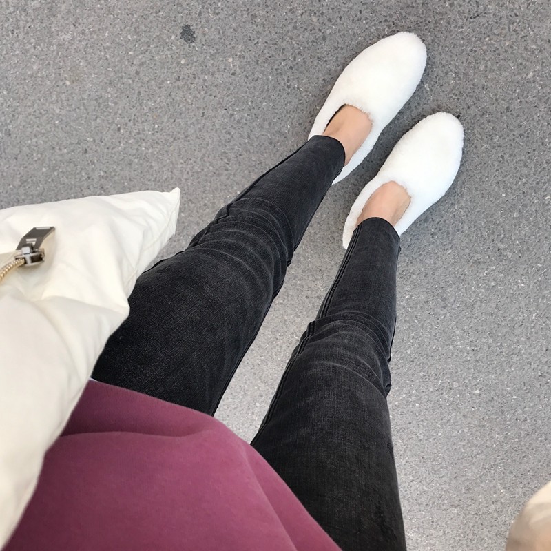 女显瘦 靴裤 冬加厚韩国高腰复古洋气紧身9分加绒牛仔裤 小脚铅笔裤
