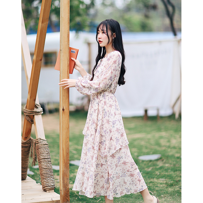 显瘦显高长裙仙气森系 春季 雪纺碎花连衣裙女长款 仙女裙子2025新款
