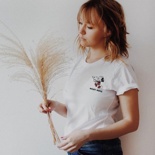 2020春夏看报减龄卡通米老鼠纯棉手绘原创T恤男女BF宽松情侣短袖