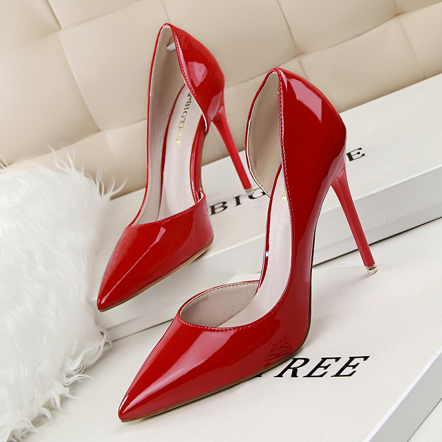 单鞋 侧空性感百搭细跟红色尖头名媛漆皮正装 女2025春款 裸色高跟鞋