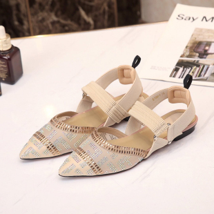 新款 水钻舒适包头绑带单鞋 时装 尖头一字扣带平底女鞋 凉鞋 2020夏季