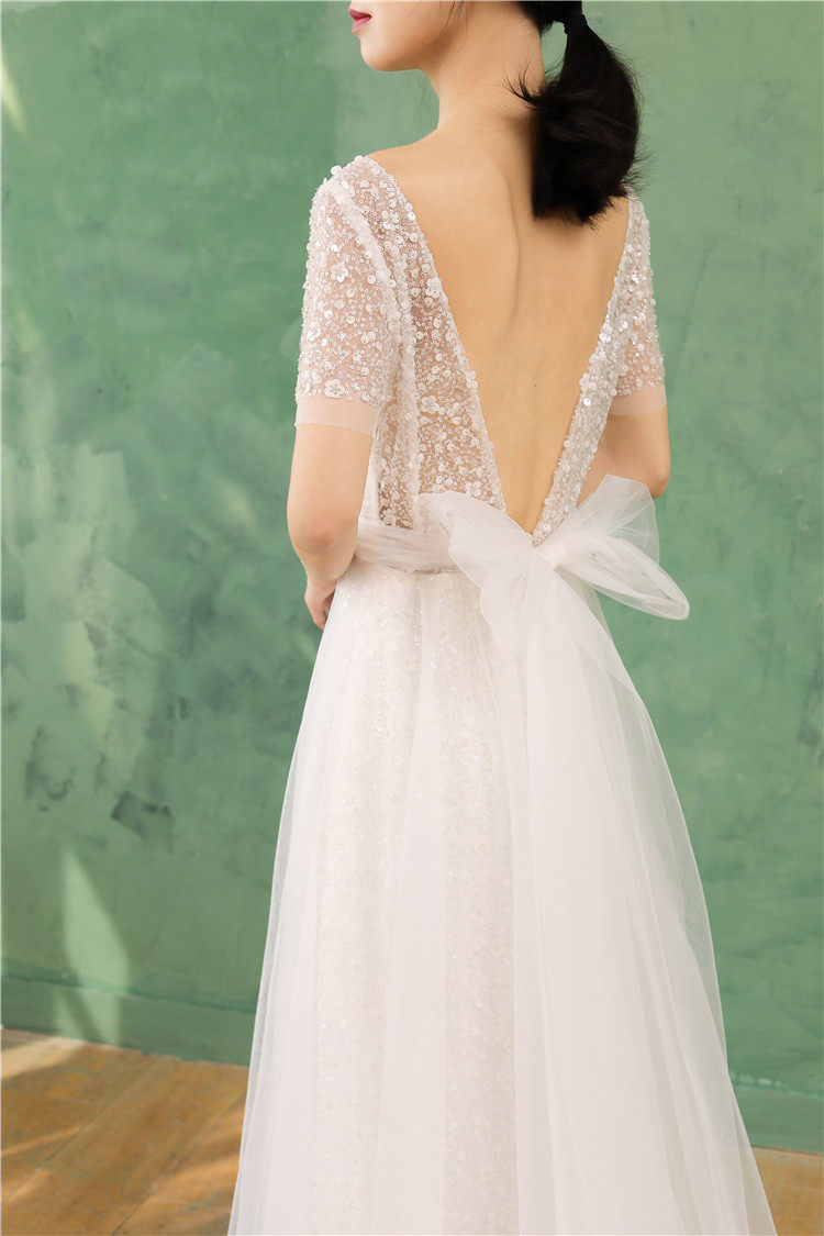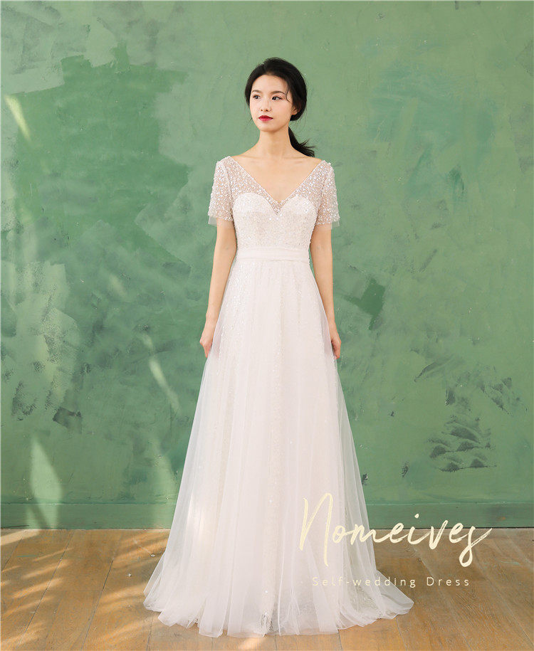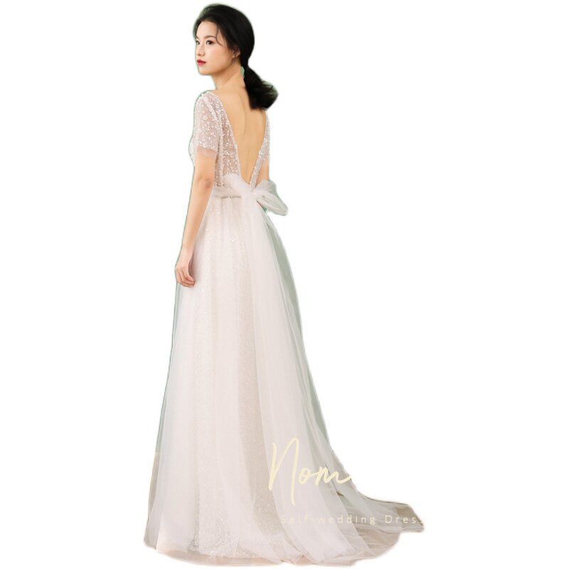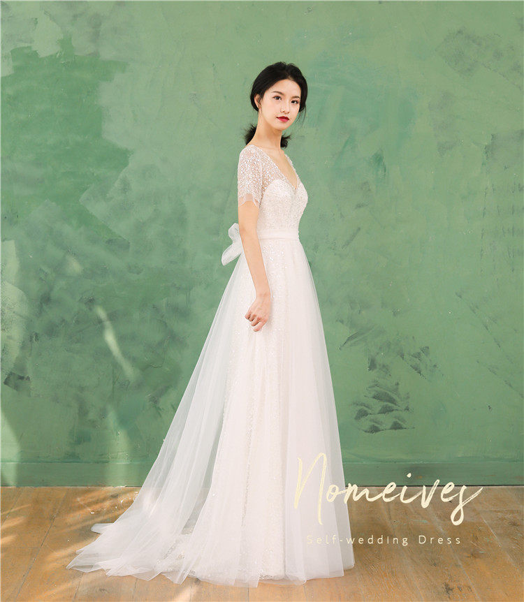 蕾丝V领收腰显瘦新娘轻婚纱简约法式 新款 森系超仙 翼