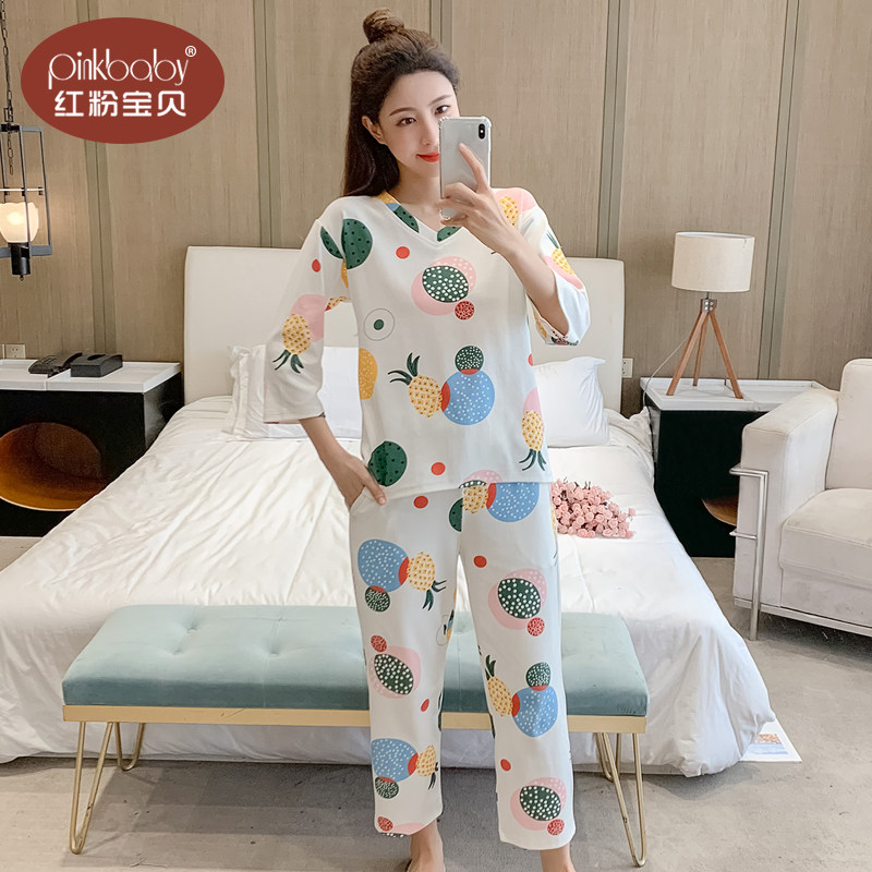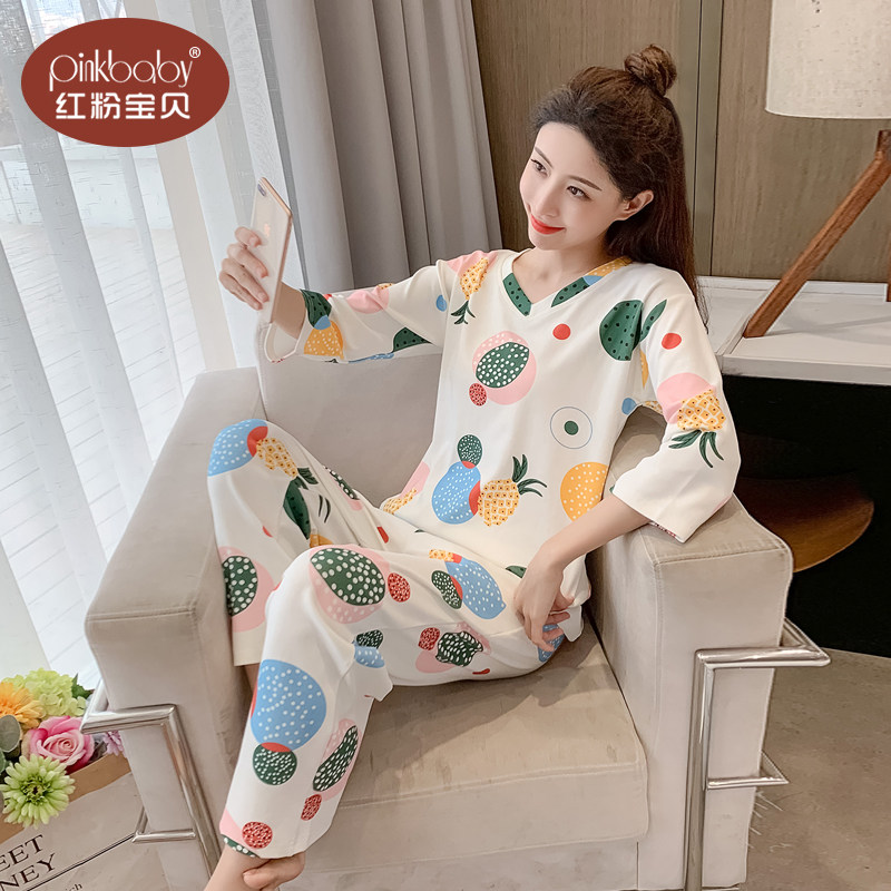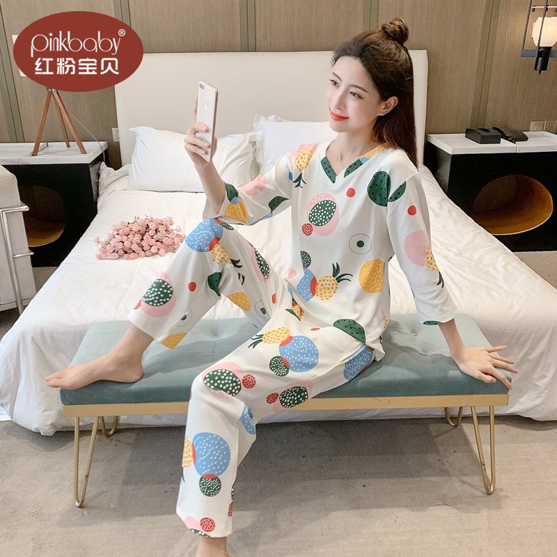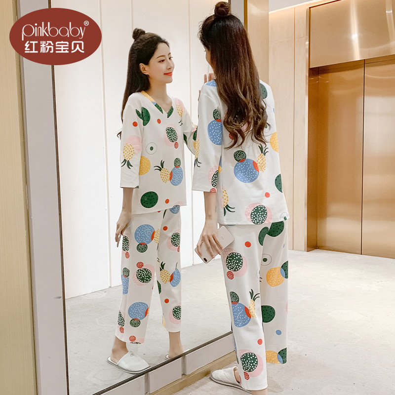 松山棉店罗纹家居服套装 三件套情侣防静电男可外穿 睡衣女春秋长袖