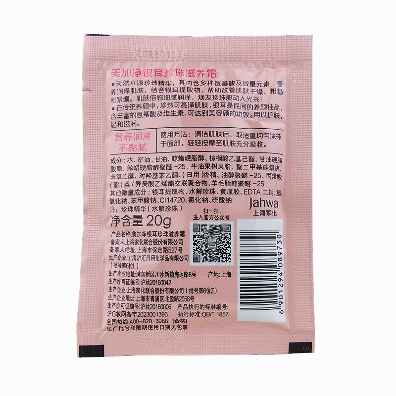 美加净银耳珍珠滋养霜20g袋装 滋润雪花膏 国货男女美加净面霜保湿
