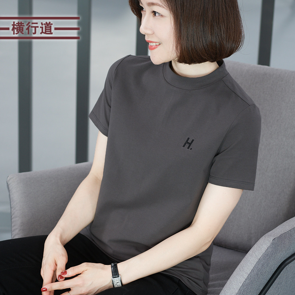 女装 t恤半高领上衣纯色体恤半袖 打底衫 字母刺绣短袖 新款 2020夏季