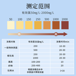 三爱思测氯试纸含氯84消毒水消毒液配比测试纸调配有效氯浓度检测余氯测定50 2000mg