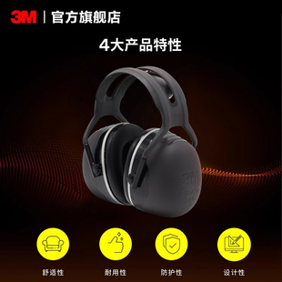 3M隔音耳罩专业防噪音睡眠学生专用静音降噪耳机工业耳罩X5A H540