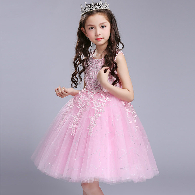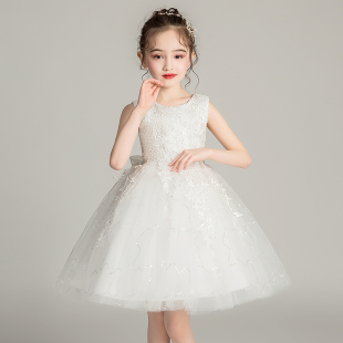 蓬蓬纱裙女儿童公主裙花童白色婚纱礼服幼儿园粉色演出服夏季 女孩