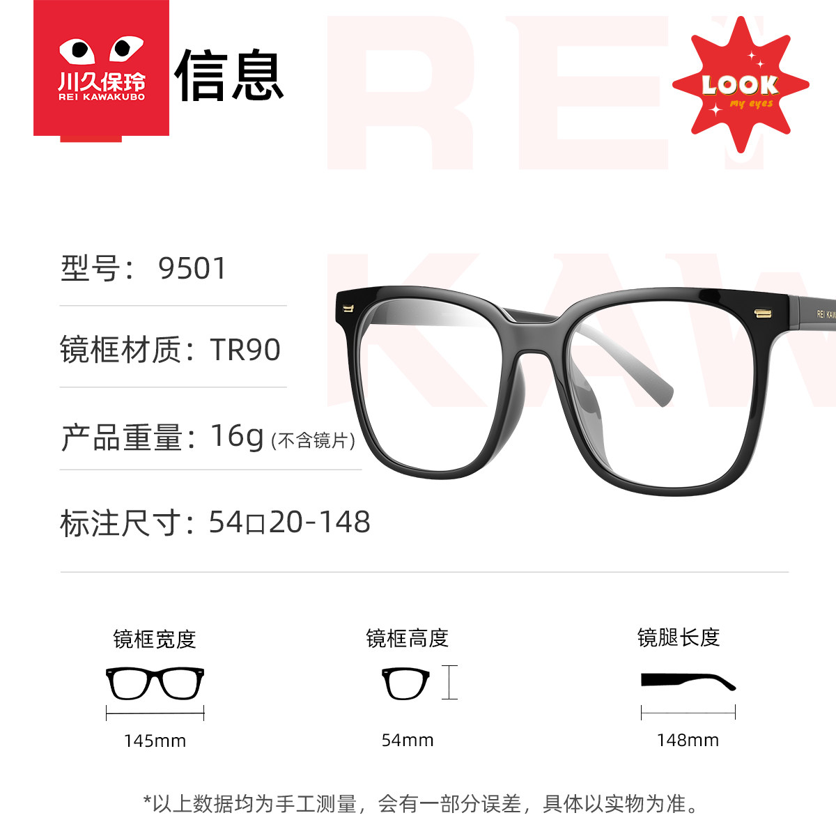 川久保玲素颜平光黑框防蓝光眼睛架女配有度数近视眼镜男大脸镜框