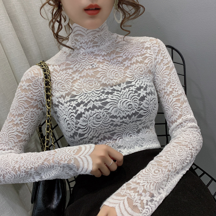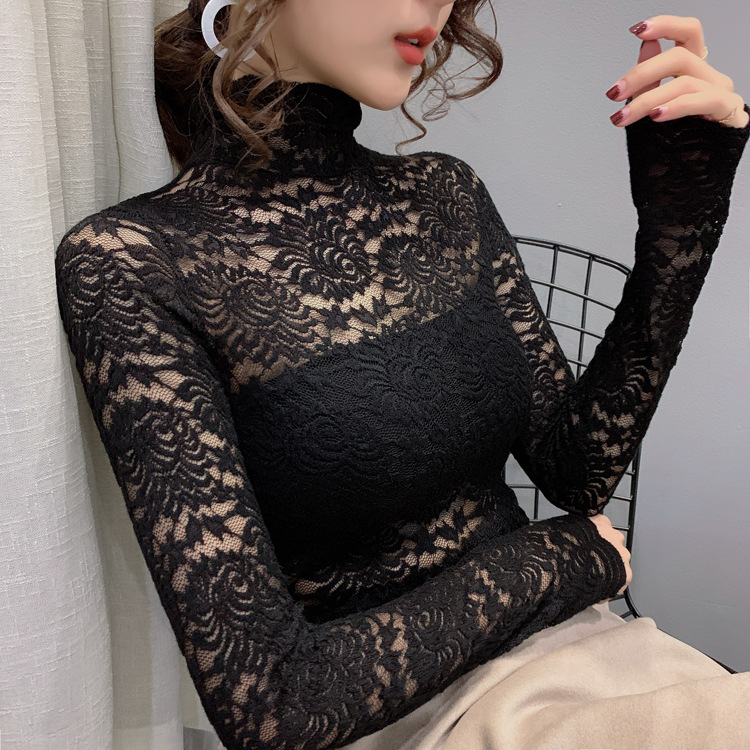 大佬衣服蕾丝微透打底衫 用品男女装 立领上衣伪娘变装 性感加绒长袖