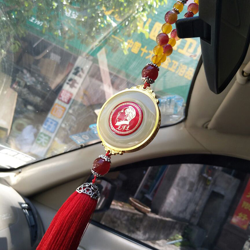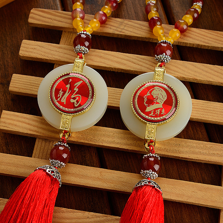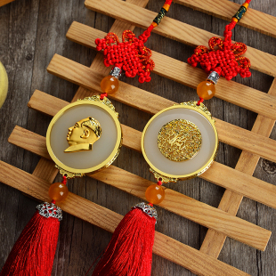 毛主席画像汽车挂件毛泽东金镶玉高档玉石车挂水晶平安车饰品雕像