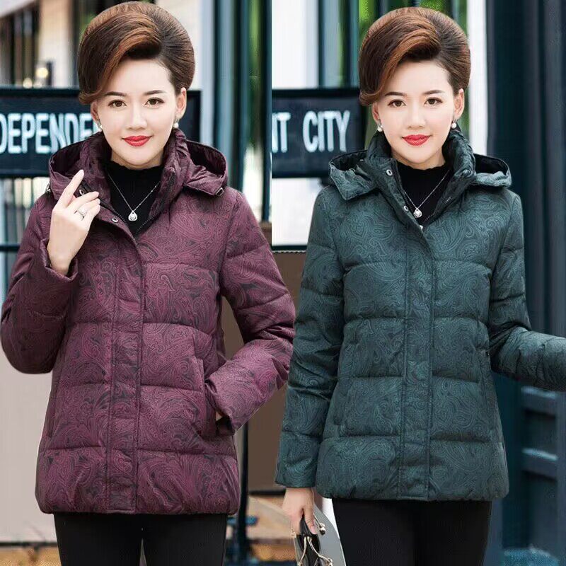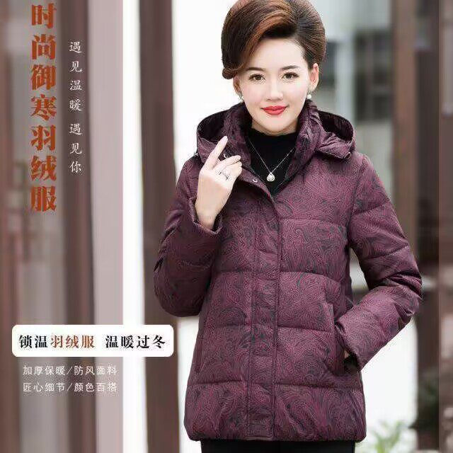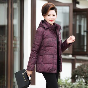老年人冬季 羽绒服女短款 加厚妈妈装 白鸭绒中款 反季 奶奶装 清仓特价