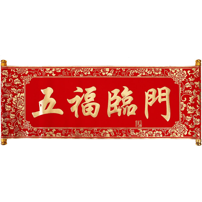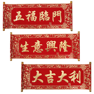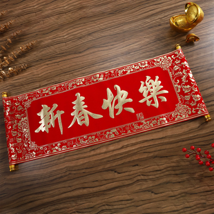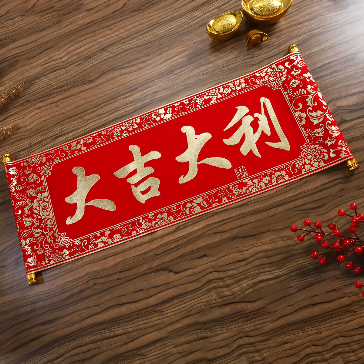 新年春节手持拿对联绒布卷轴横批挥春公司晚会舞台表演道具拍照