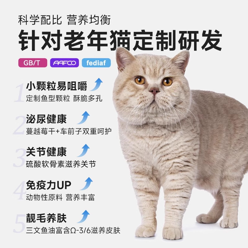 老年猫粮专用7岁10岁以上高龄猫咪营养鲜肉中老年猫5斤装 小颗粒