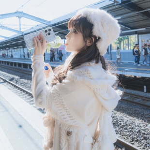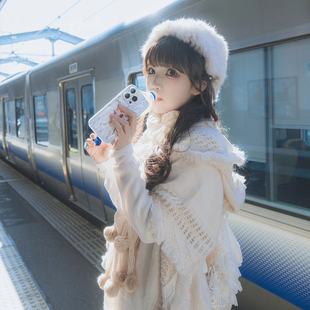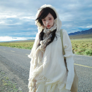 白色森系斗篷披肩百搭流苏毛衣针织衫 草原旅行波西米亚披风围巾女