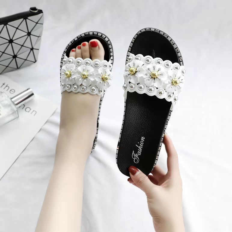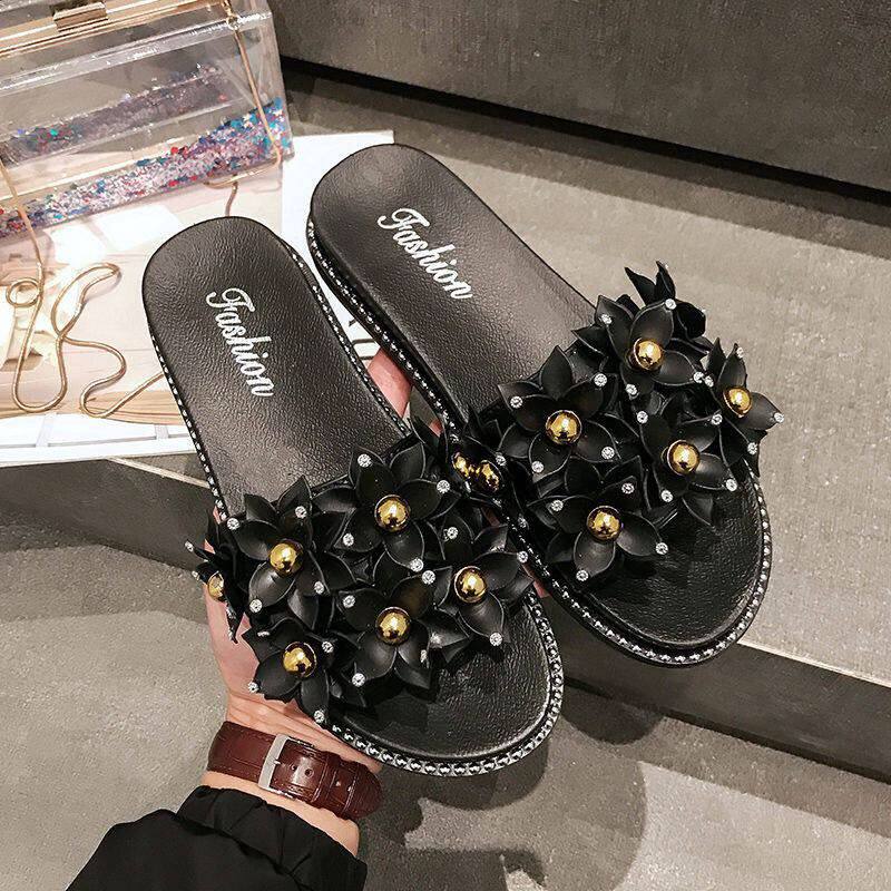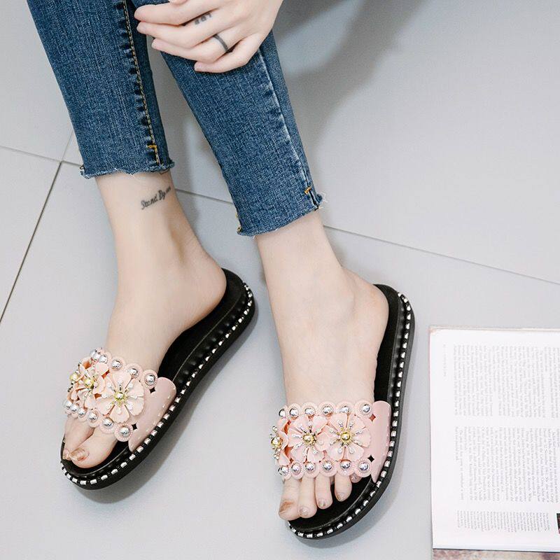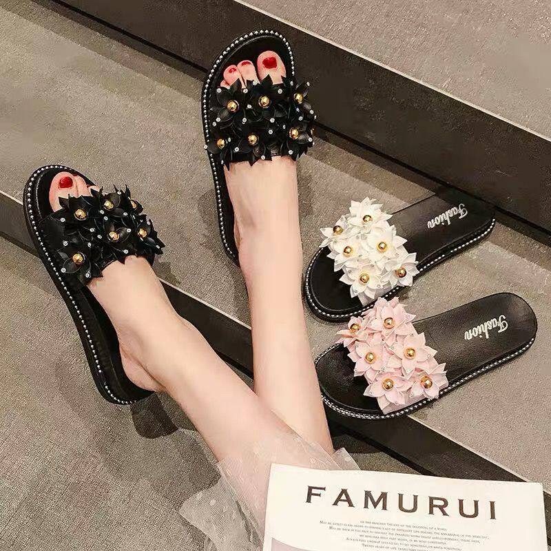 百搭女凉鞋 时尚 拖 甜美厚底小花朵一字拖女生韩版 ins潮网红夏新款