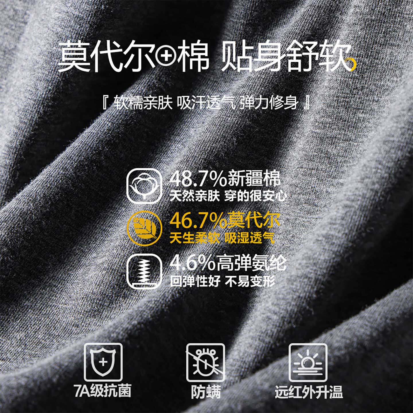 冬季 浪莎男士 新款 莫代尔棉毛衫 保暖内搭上衣线衣保暖内衣 秋衣薄款