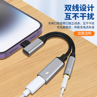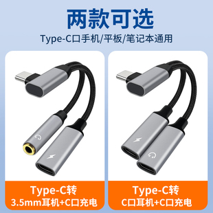 X7Ultra双头TypeC一分二耳机充电听歌转换器3.5mm弯头转接线直播声卡 X8手机N3专用DAC数字解码 适用OPPO Find