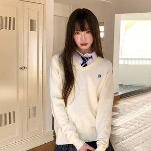 东京岁时记jk外套米白色针织V领套头毛衣女款 春秋纯棉上衣灰野川