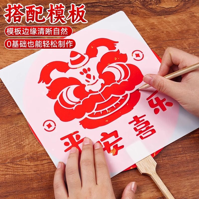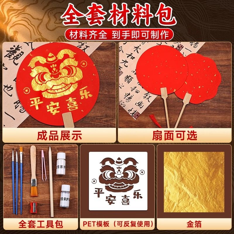 新年儿童手工diy金箔画团扇材料非遗烧箔画绘画装 饰幼儿园小学生