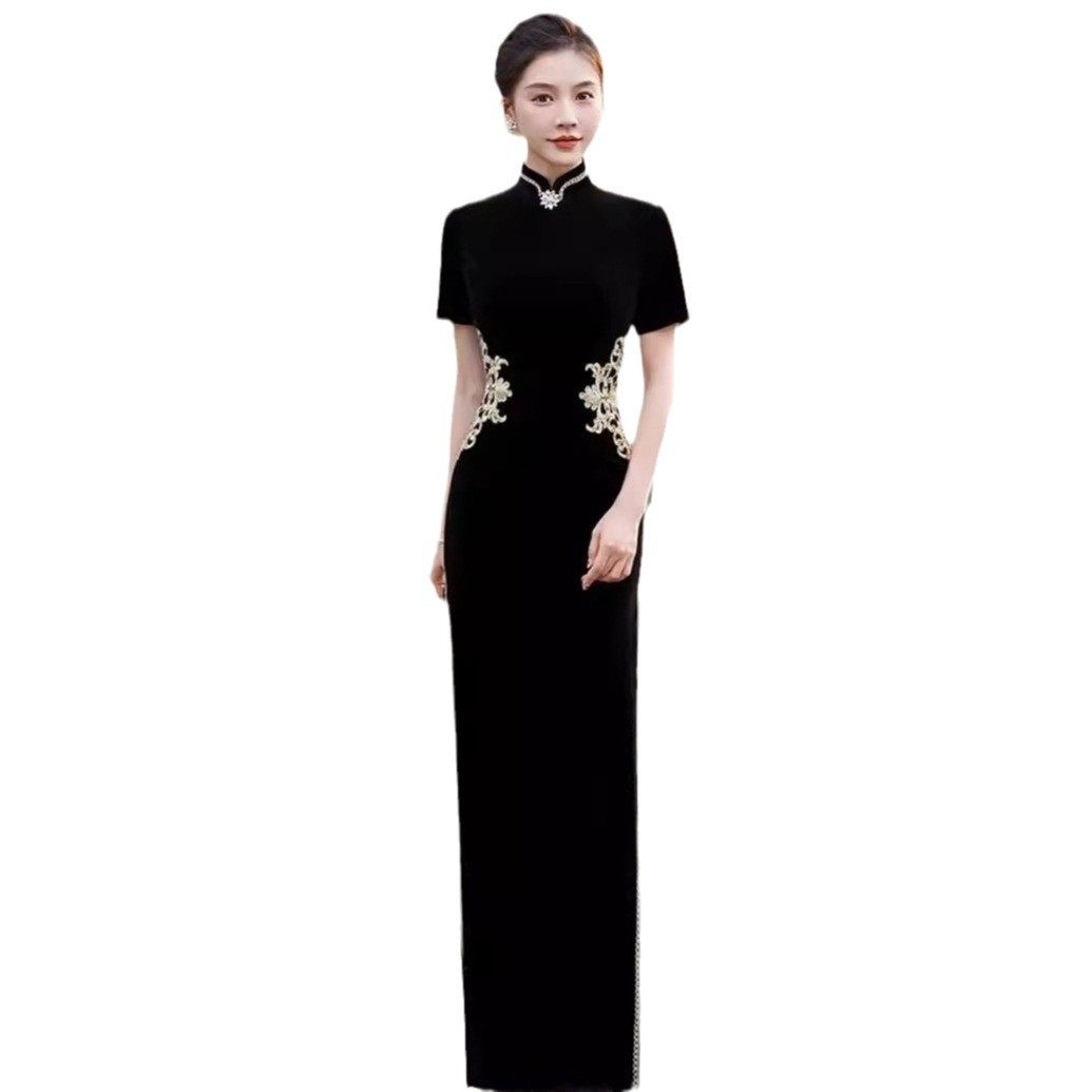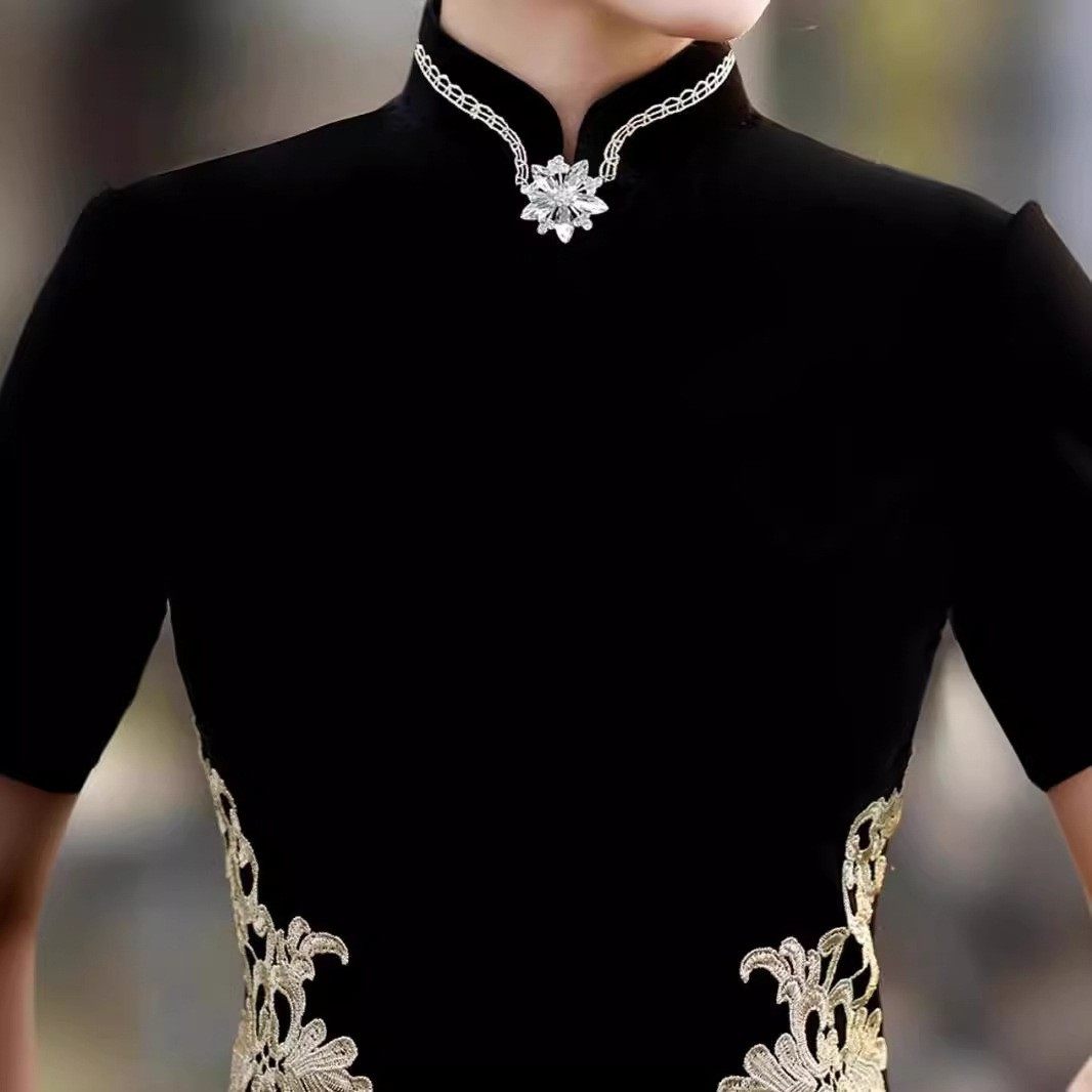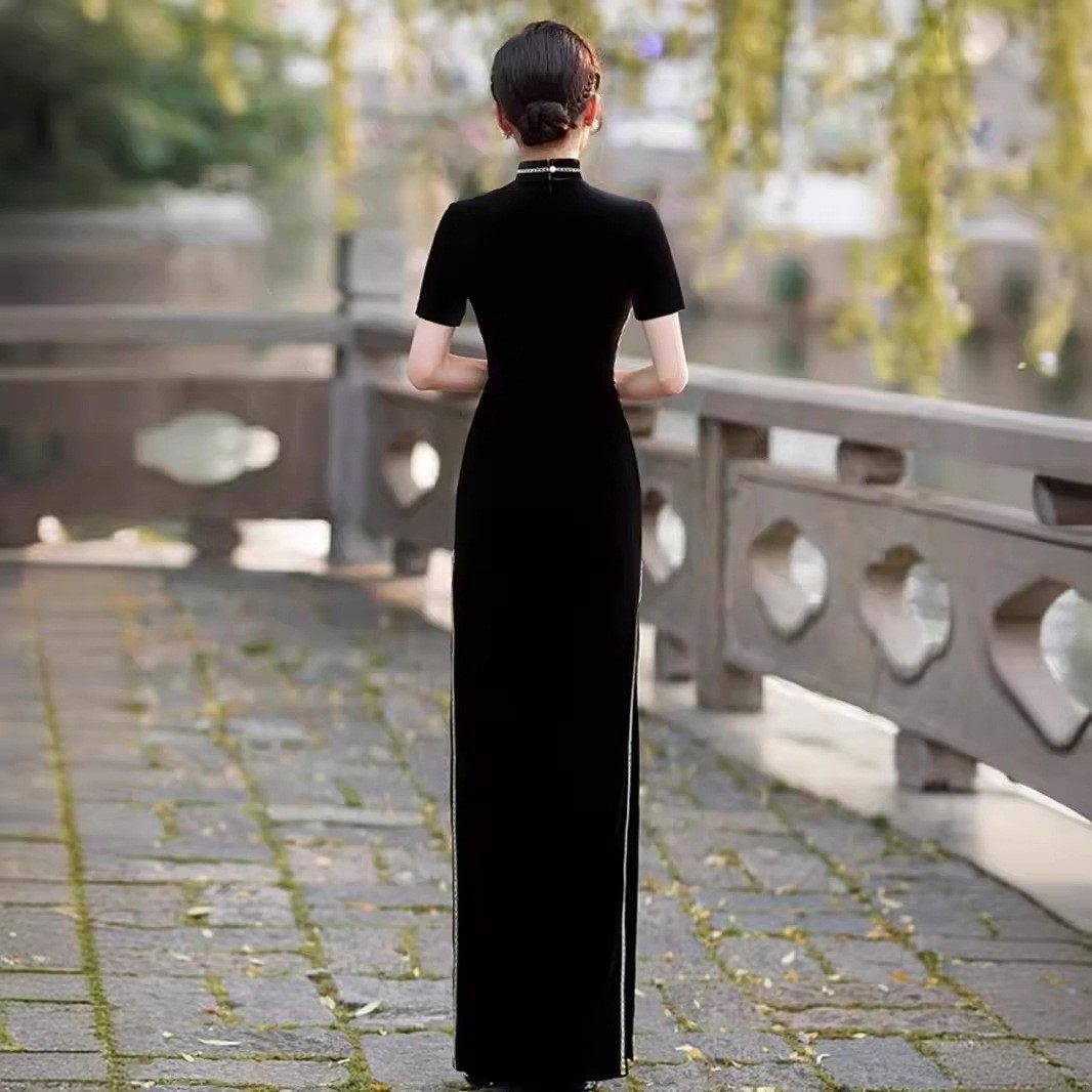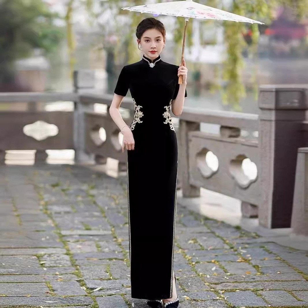 中长款 显瘦走秀连衣裙日常丝绸优雅气改良旗袍精致 复古演出服修身