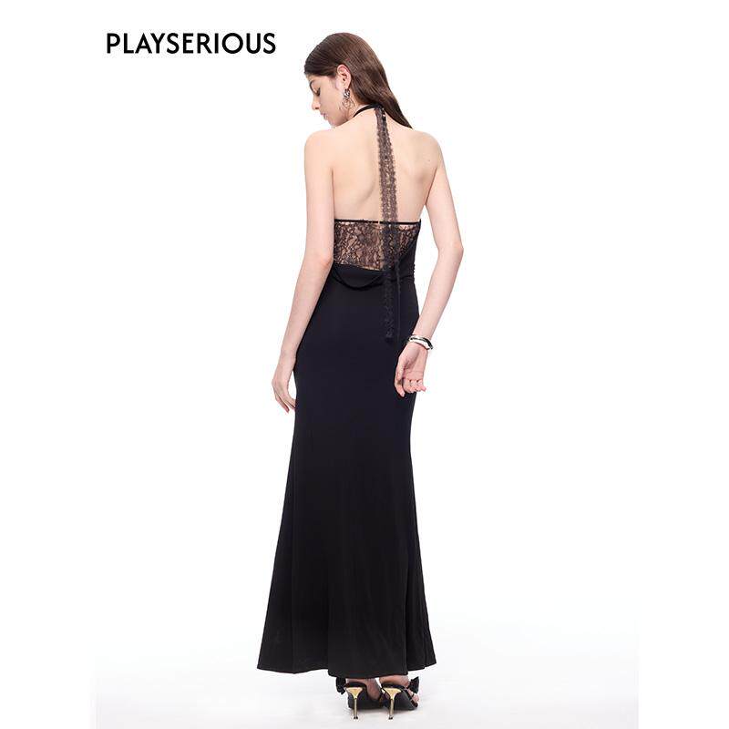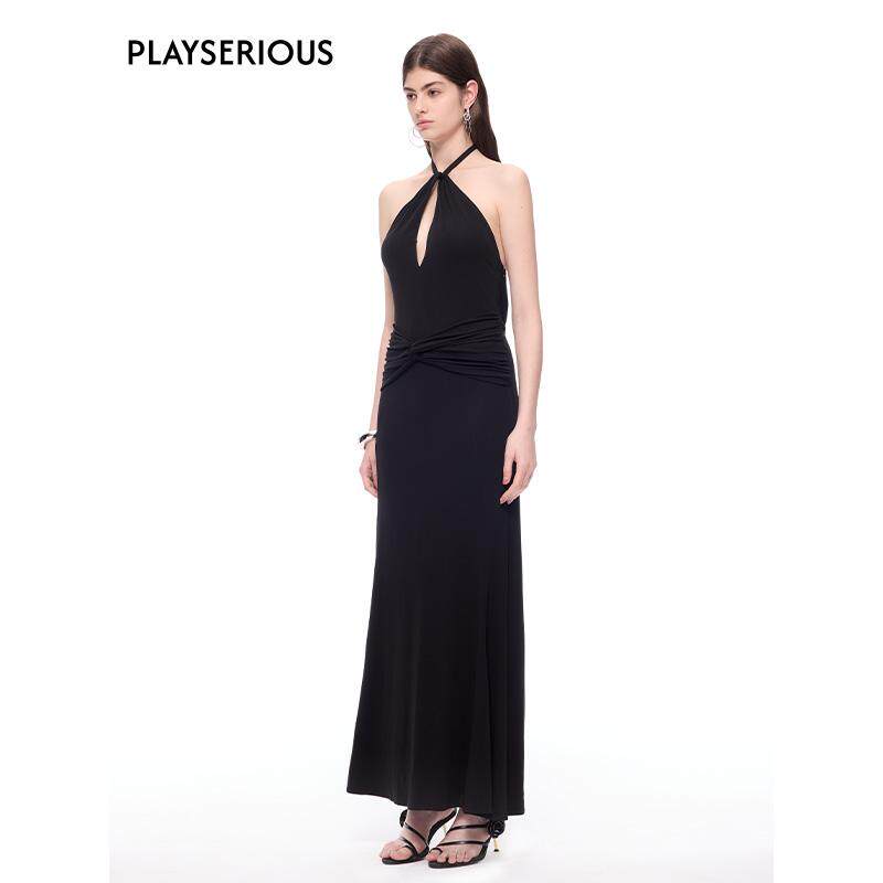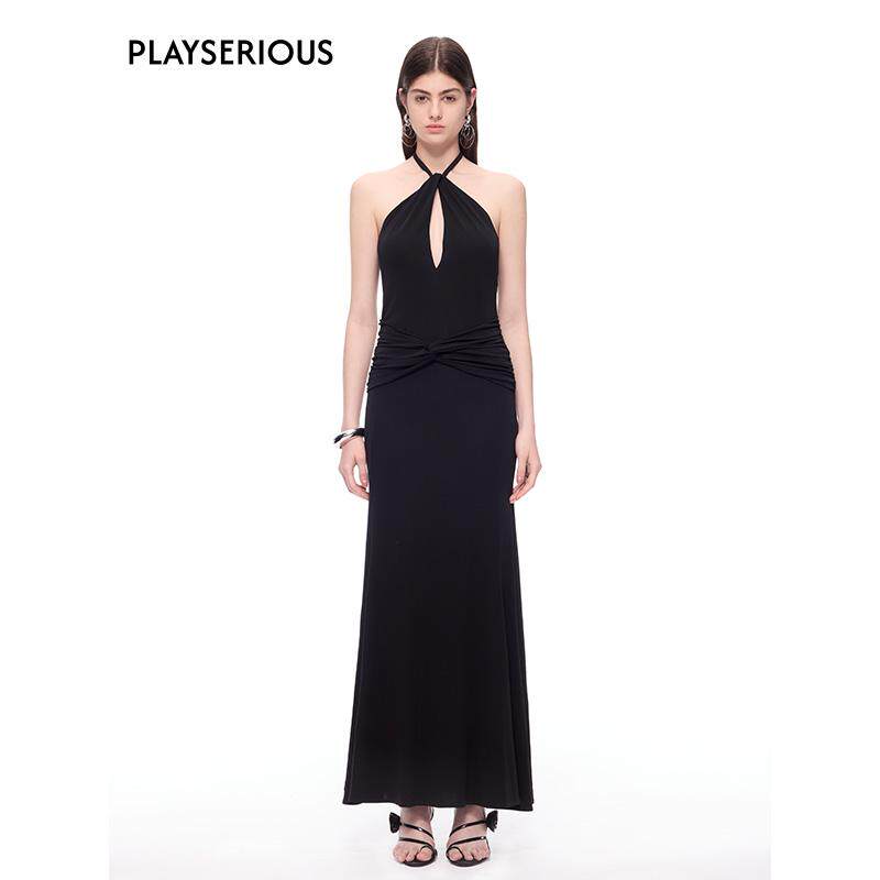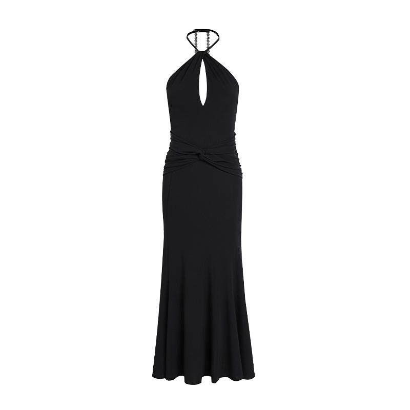 CNLEEWEI 小众扭结挂脖大露背休闲连衣裙 淡人穿搭春夏新款
