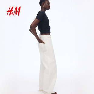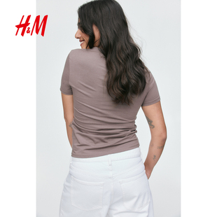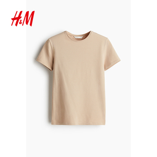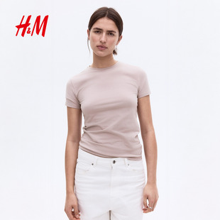 短袖 HM女装 休闲圆领简约修身 洋气内搭时尚 上衣1260200 T恤2025新款