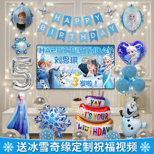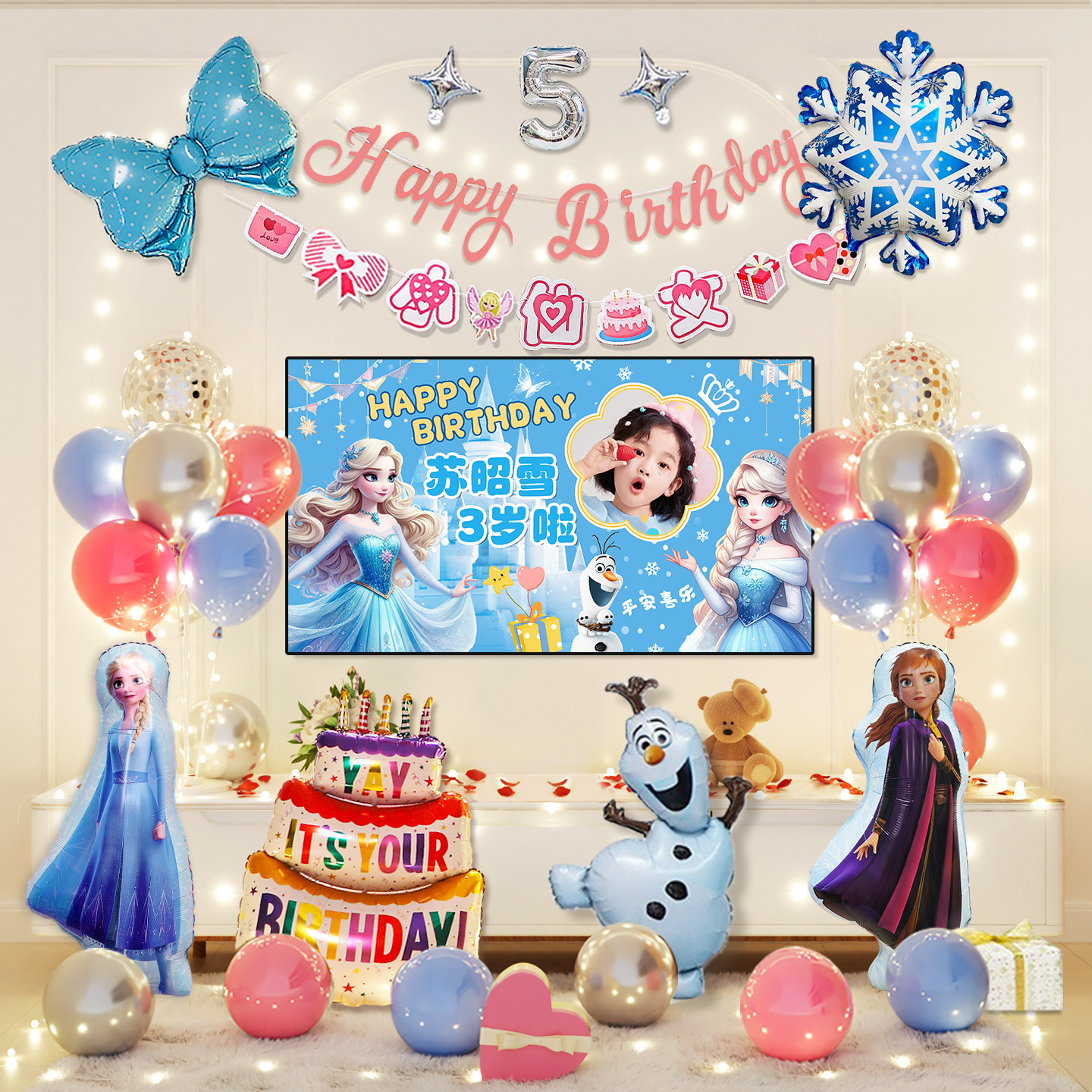 冰雪奇缘女孩艾莎公主生日快乐派对仪式 饰品 感气球氛围布置场景装