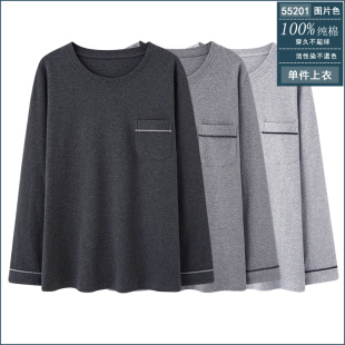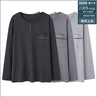 全棉居家服上装 100%纯棉圆领休闲加大码 男单件睡衣上衣长袖 春秋季