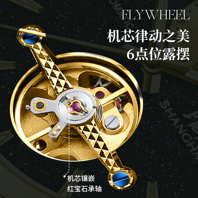 上海手表官方旗舰日月星辰全自动机械表星空手表飞轮防水夜光6009