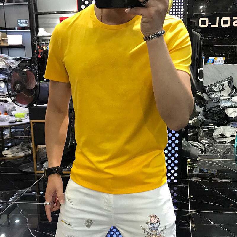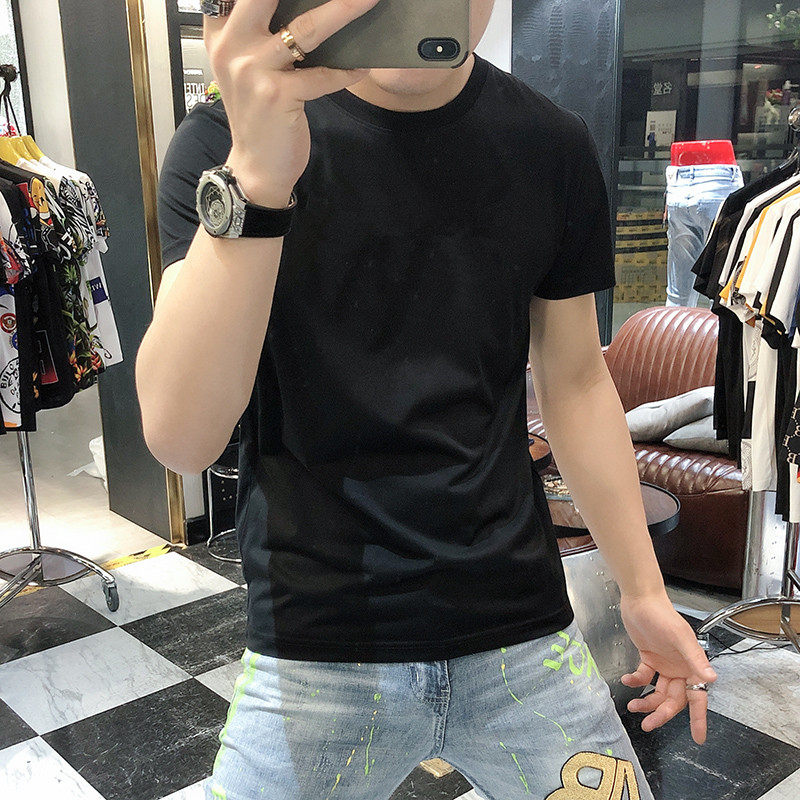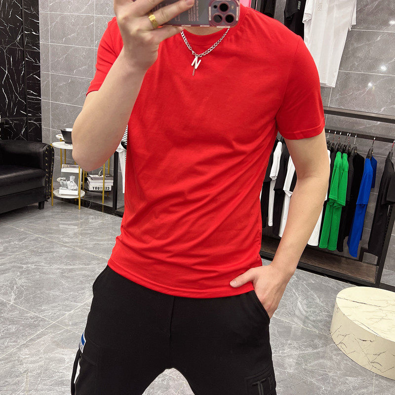 白色半袖 T恤夏季 衫 内搭男装 爽滑冰丝棉男士 纯色丝光体恤大码 短袖