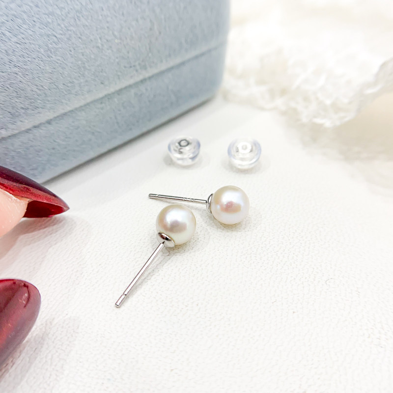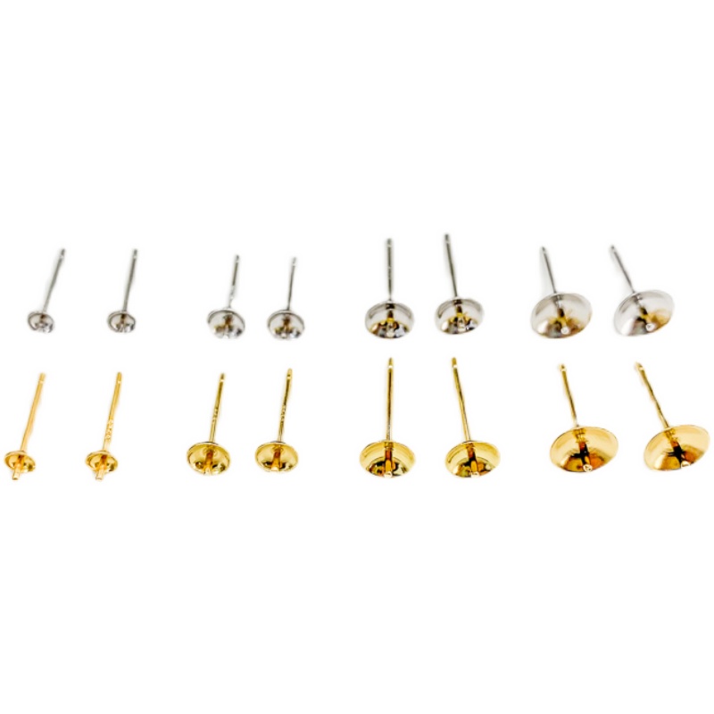 DIY配件 S925纯银简单珠盘针基础耳钉空托珍珠玉石耳托半成品3