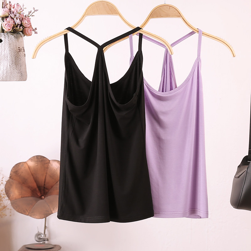 薄 显瘦美背冰丝纯欲风上衣夏季 百搭小吊带 工字莫代尔背心女修身