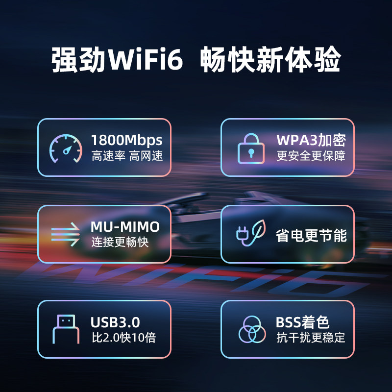 腾达WIFI6无线网卡AX1800M双频千兆免驱动usb台式 上市 机笔记本电竞高速率5G接收器热点上网发射器U18 新品