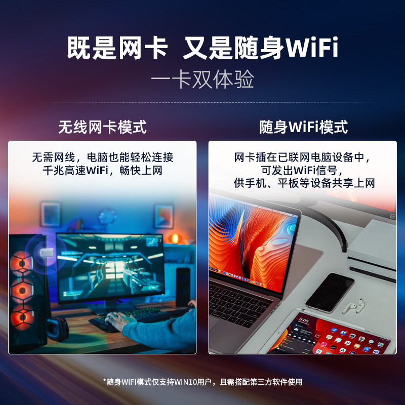 电脑WiFi接收器5G台式 WiFi6免驱动无线网卡USB台式 机上网迷你外置网络信号发射器笔记本家用随身 急速发货